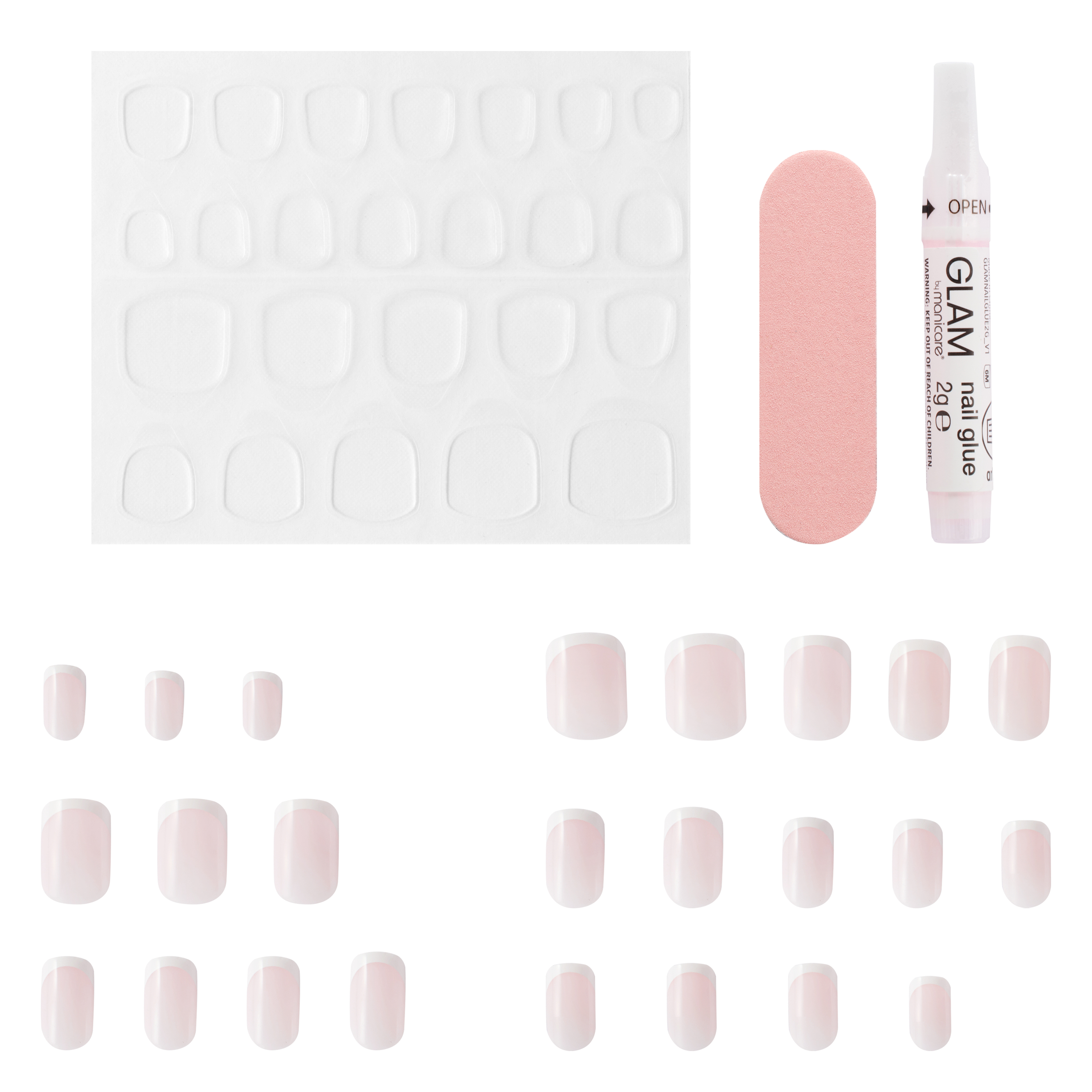 Glam by Manicare Press On Nails Medium Square French Pink Kit