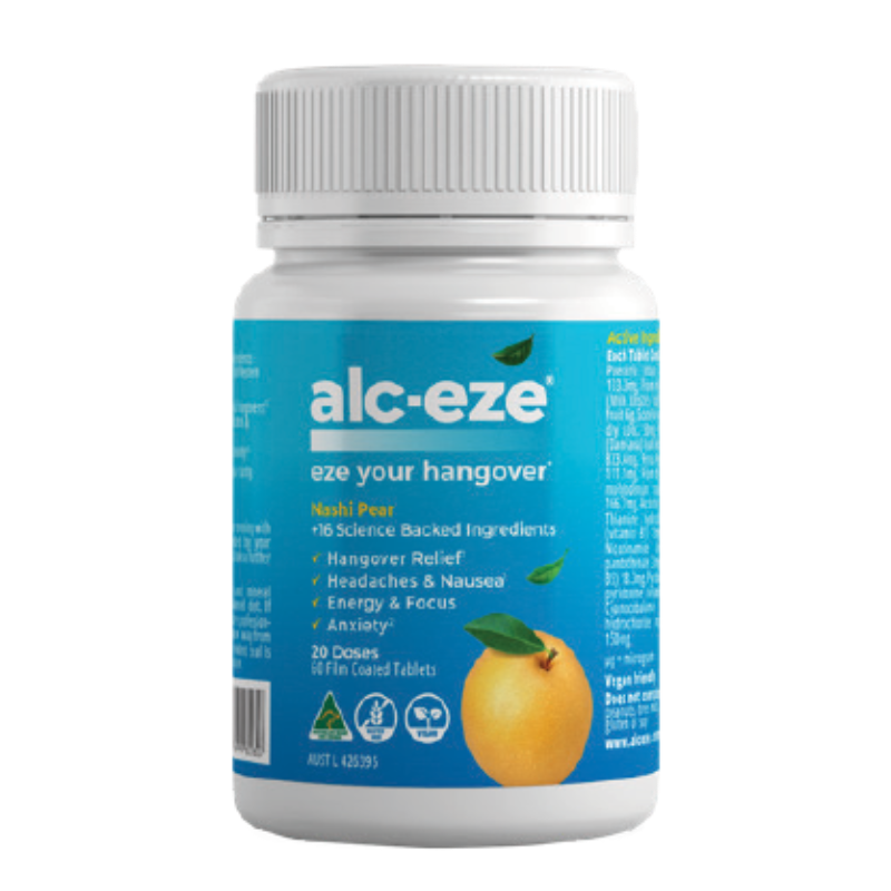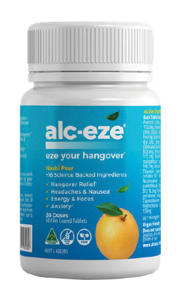 Alc-Eze Tablets is a supplement designed to help relieve and prevent hangover symptoms, supporting alcohol metabolism and recovery.