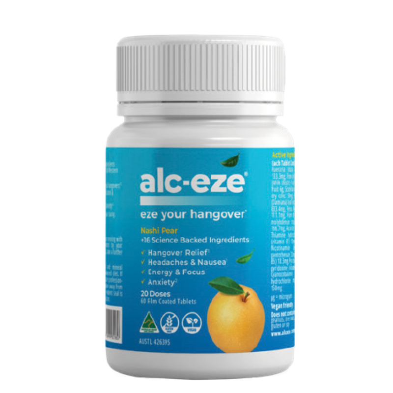 Alc-Eze Tablets is a supplement designed to help relieve and prevent hangover symptoms, supporting alcohol metabolism and recovery.