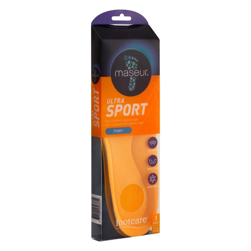 Footcare Men's Ultra Sport Insoles are gel comfort insoles with arch support for sporty feet.