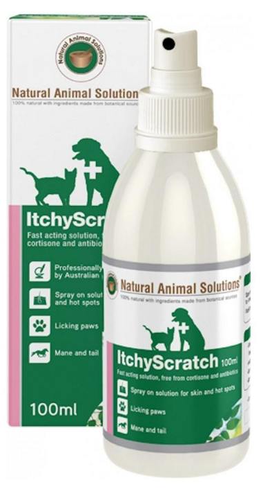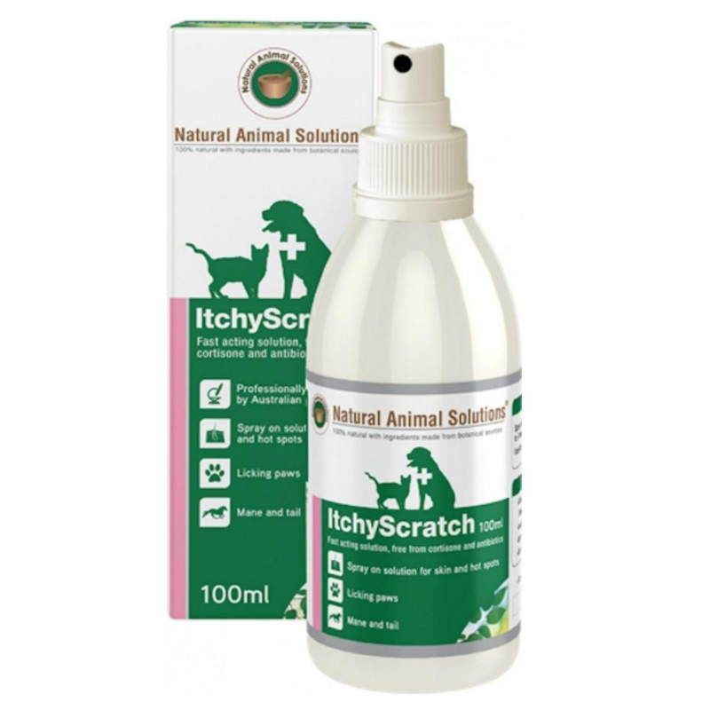 Natural Animal Solutions Itchyscratch Spray (100ml) is a naturally formulated spray designed to help alleviate itchy skin and related symptoms. Itchy Scratch Spray is fast-acting cortisone free spray which is easy to use, and safe for use on all skin types and conditions. ItchyScratch is an easy to use spray which contains all natural ingredients and is suitable for dogs, cats and small animals of all ages.