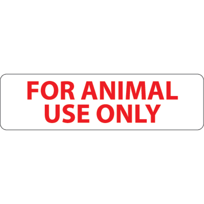 Pet Label Rectangle RED For Animal Use Only Red on White 40 x 11mm
