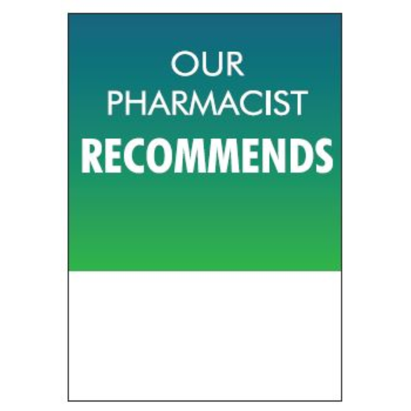 POS SHELF TICKETS - OUR PHARM RECOMMENDS 50x75mm 210gsm Digital 50/Pk