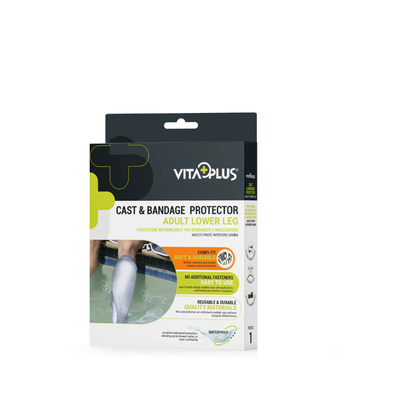 The VitaPlus Comfi-Fit Cast & Bandage Protector is designed to keep your casts, dressings, and bandages dry and secure during bathing, showering, or swimming.