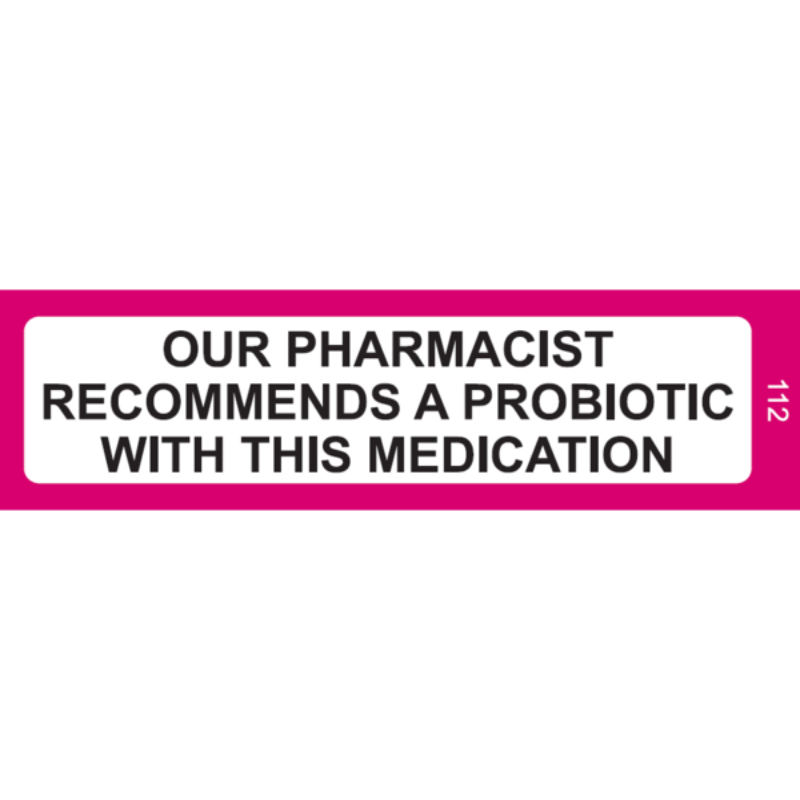 Pharmacist Recommends Probiotic Label Black & Pink PMS 226c on WHITE