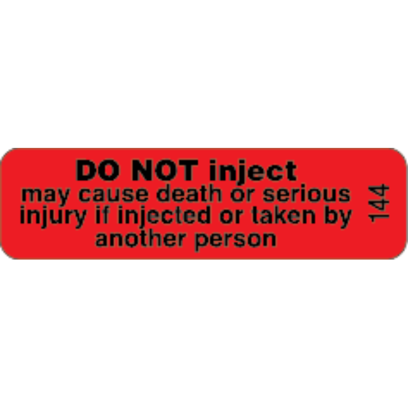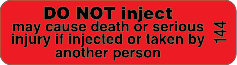 Do Not Inject Warning Labels Black on Fluro Red